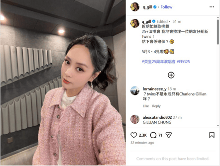 阿娇则表示Twins会有一名「25+演唱会」限定版新成员加入,请Fans 5月3日及4日敬请期待。